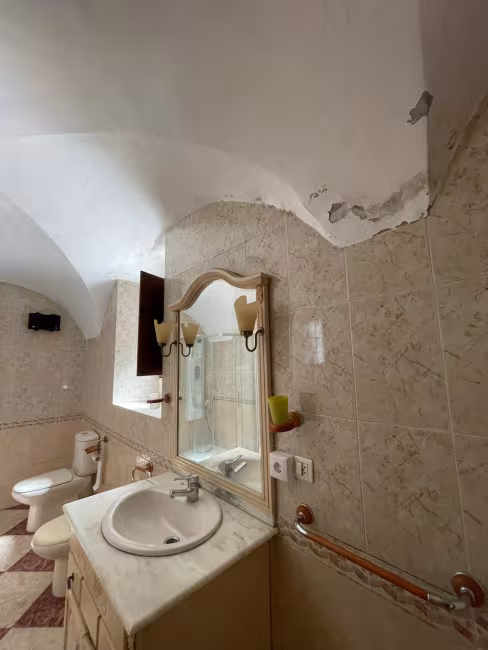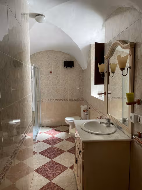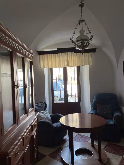 Tiene un hermoso zaguán, sala de estar, 4 dormitorios, cocina comedor con despensa y chimenea, cuarto de baño y aseo, tiene calefacción de gas-oíl, patio de 60 m2, y bodega de 60 m2, con algunos conos y tinajas.